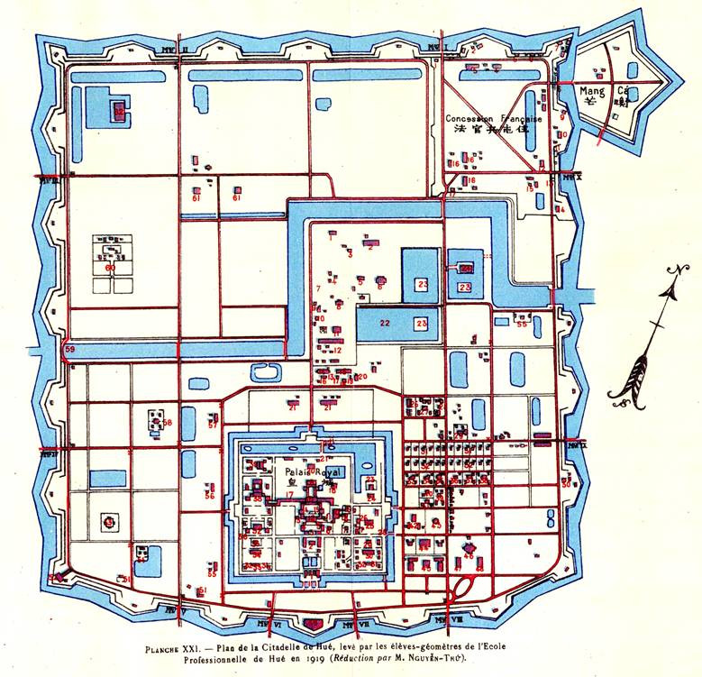 Bản đồ tổng thể Kinh thành Huế, thể hiện vị trí đóng đô của Nhà Nguyễn.