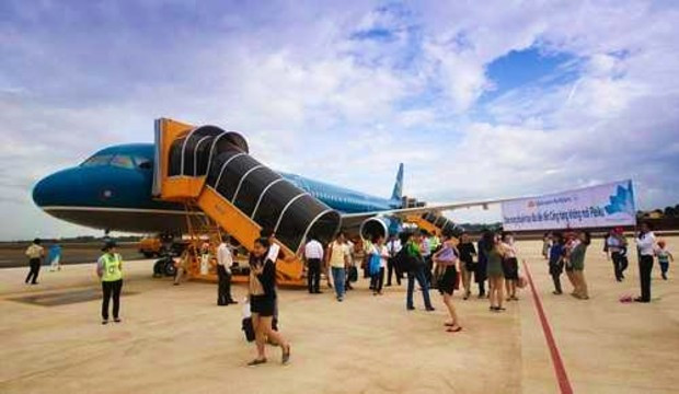 Máy bay của hãng hàng không Vietnam Airlines chuẩn bị cất cánh, biểu tượng cho chuyến đi nhanh chóng