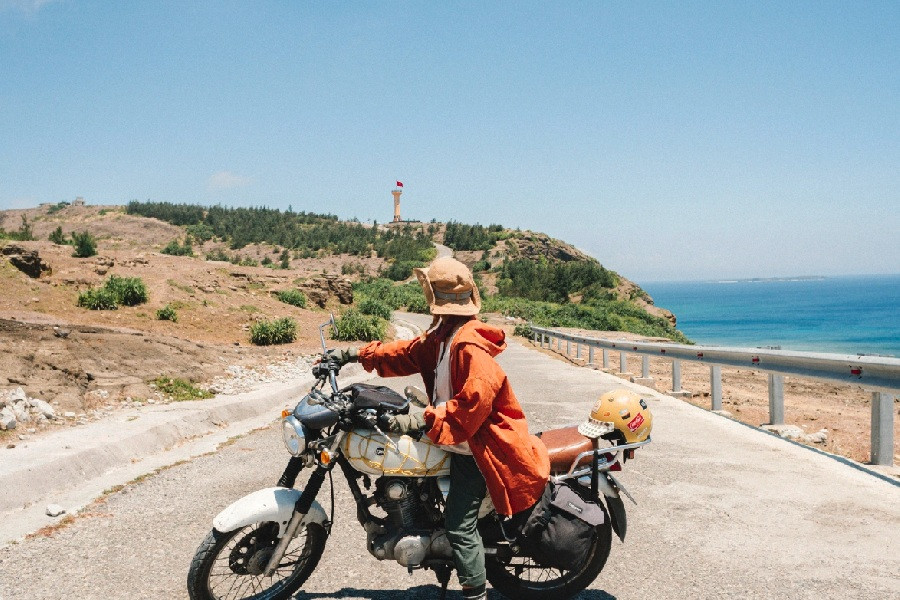 Người lái xe máy trên con đường ven biển từ Ninh Thuận đến Nha Trang