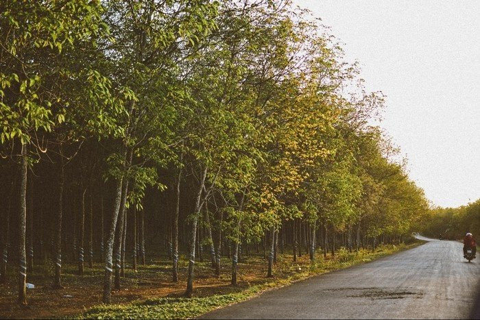 Sau khi xuống phà tại Nhơn Trạch, bạn sẽ đi theo đường Lý Thái Tổ khoảng 5 km. Tại ngã ba, rẽ phải vào đường Trần Văn Trà, sau đó tiếp tục rẽ phải sang đường Quách Thị Trang và đi thêm khoảng 4 km. Kế đến, rẽ phải vào đường Tôn Đức Thắng. Đoạn đường này, dài khoảng 14-16 km, sẽ đưa bạn qua những cánh rừng cao su bạt ngàn của Nhơn Trạch, một khung cảnh vô cùng thư thái và trong lành. Đây là phần đường khá vắng vẻ, lý tưởng để tận hưởng không khí trong lành của vùng ngoại ô.