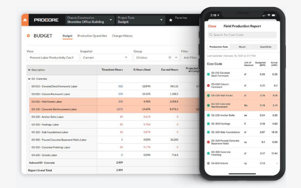 Nền tảng Procore chủ yếu phục vụ các tổng thầu, nhà quản lý xây dựng, nhà thầu phụ và chủ sở hữu. Nó được cung cấp dưới dạng ứng dụng trực tuyến (dựa trên đám mây) cho máy tính để bàn, cũng như các thiết bị thông minh như điện thoại di động và máy tính bảng chạy hệ điều hành iOS, Android và Windows. Sự linh hoạt này hỗ trợ công tác nhanh chóng, thuận tiện mọi lúc mọi nơi. Các tính năng mà Procore cung cấp rất phong phú, bao gồm đặt giá thầu, nhật ký hàng ngày, bản vẽ thiết kế, quản lý cuộc họp, ảnh dự án, danh sách việc cần hoàn tất, đề xuất, lập lịch trình, thông số kỹ thuật dự án, đệ trình, thẻ thời gian và cộng tác thời gian thực. Hơn một nửa số giám đốc và kỹ sư dự án đã báo cáo tiết kiệm được hơn 5 giờ mỗi tuần nhờ Procore, và hơn 76% người dùng cho biết một dự án kéo dài 6 tháng có thể hoàn thành sớm hơn 3 ngày, góp phần cải thiện đáng kể lợi nhuận doanh nghiệp. Tuy nhiên, chi phí của Procore khá cao, phù hợp với những doanh nghiệp có doanh thu từ 5 triệu đô la Mỹ mỗi năm trở lên.
