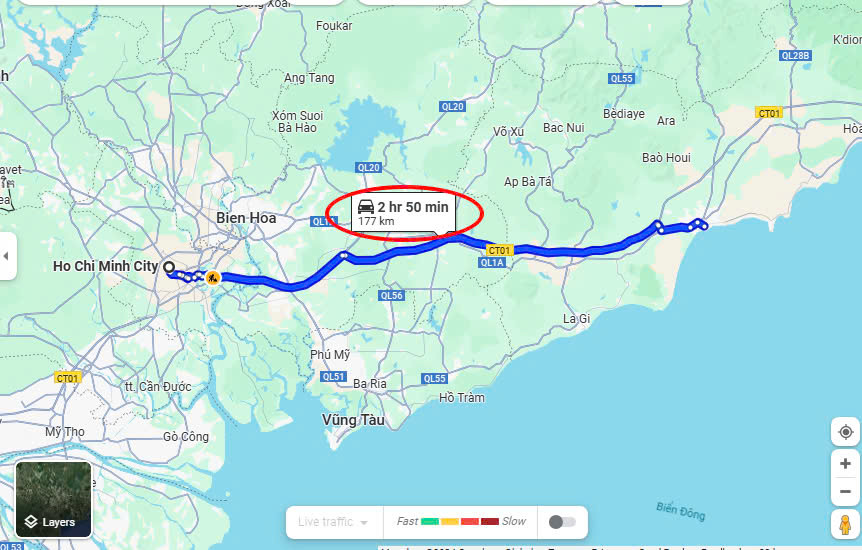 1. Phan Thiết cách TP.HCM bao nhiêu km theo đường cao tốc mới?