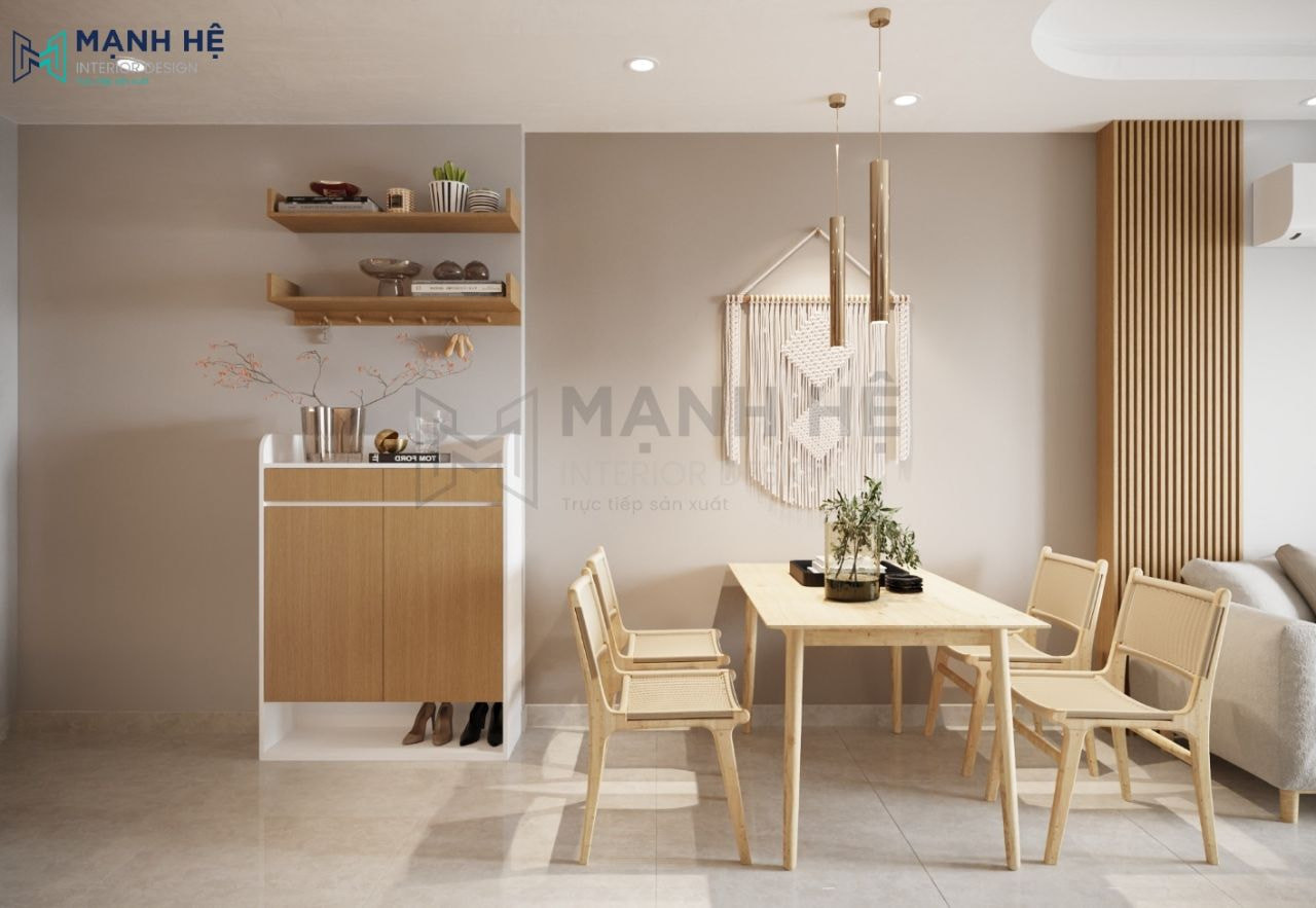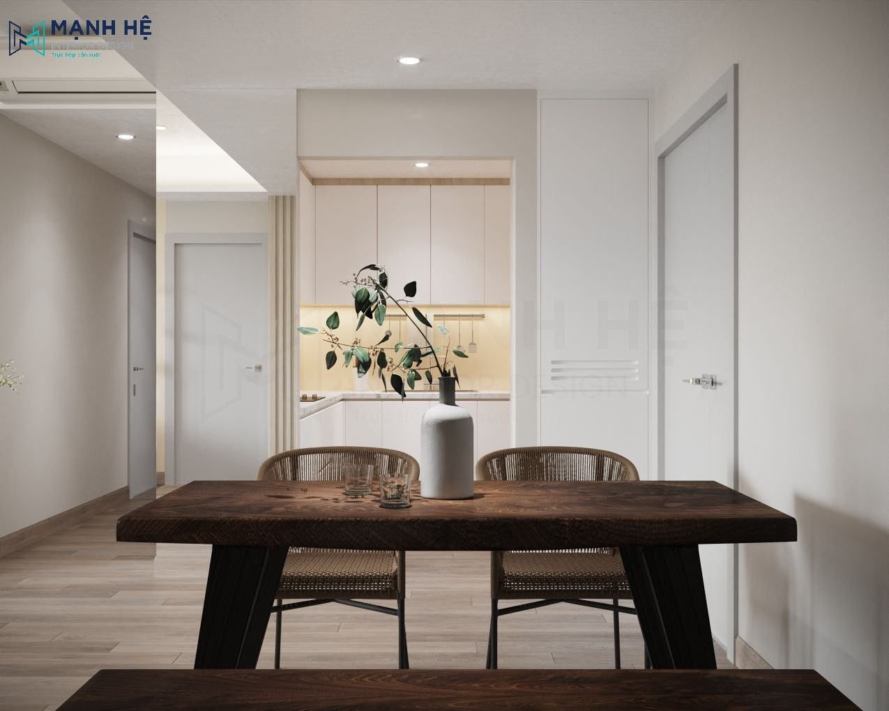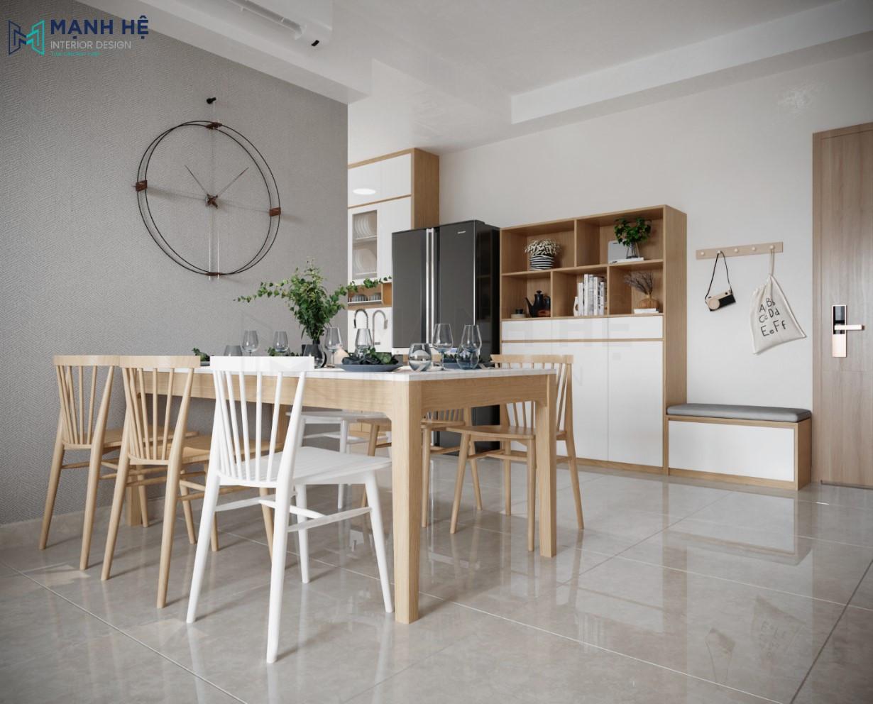 Bộ bàn ghế ăn bằng gỗ đẹp, bền bỉ là món đồ không thể thiếu, nhất là trong xu hướng thiết kế tích hợp khu vực nấu nướng với bàn ăn. Đối với căn hộ chung cư, việc lựa chọn kích thước bàn ăn cần hài hòa với tổng thể không gian. Bạn có thể cân nhắc các mẫu bàn ăn thông minh, có thể gấp gọn hoặc mở rộng khi cần thiết, nhằm tối ưu hóa diện tích khi không sử dụng.