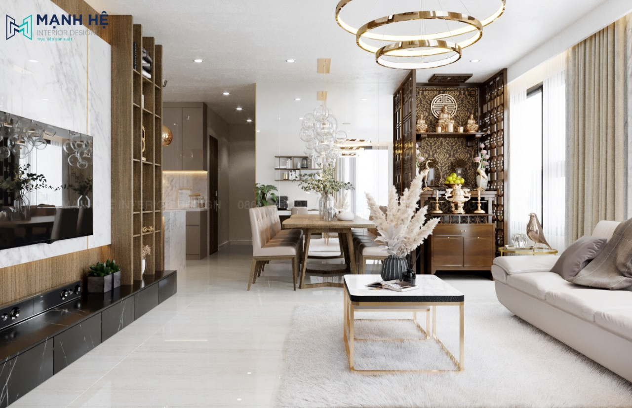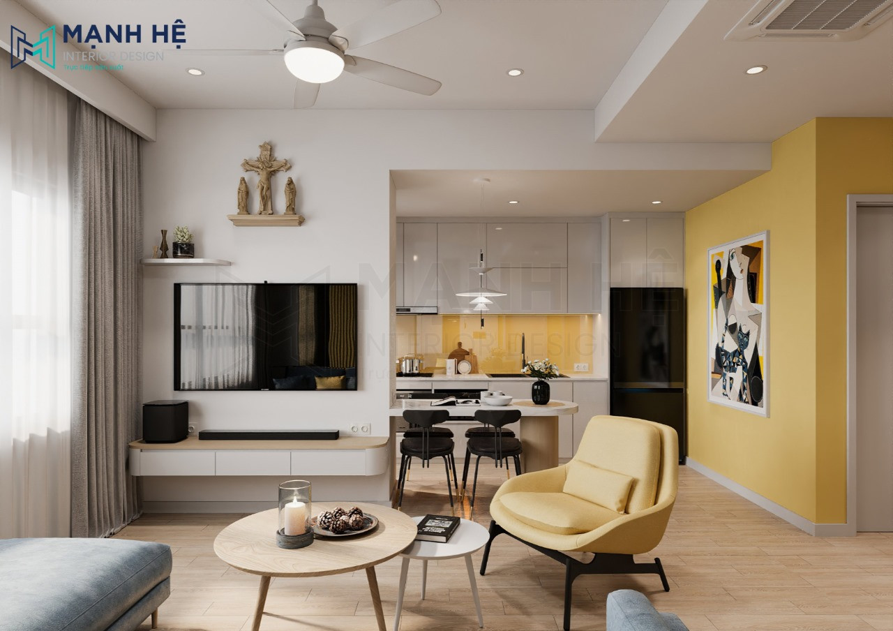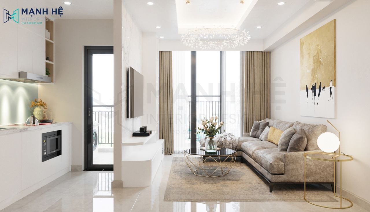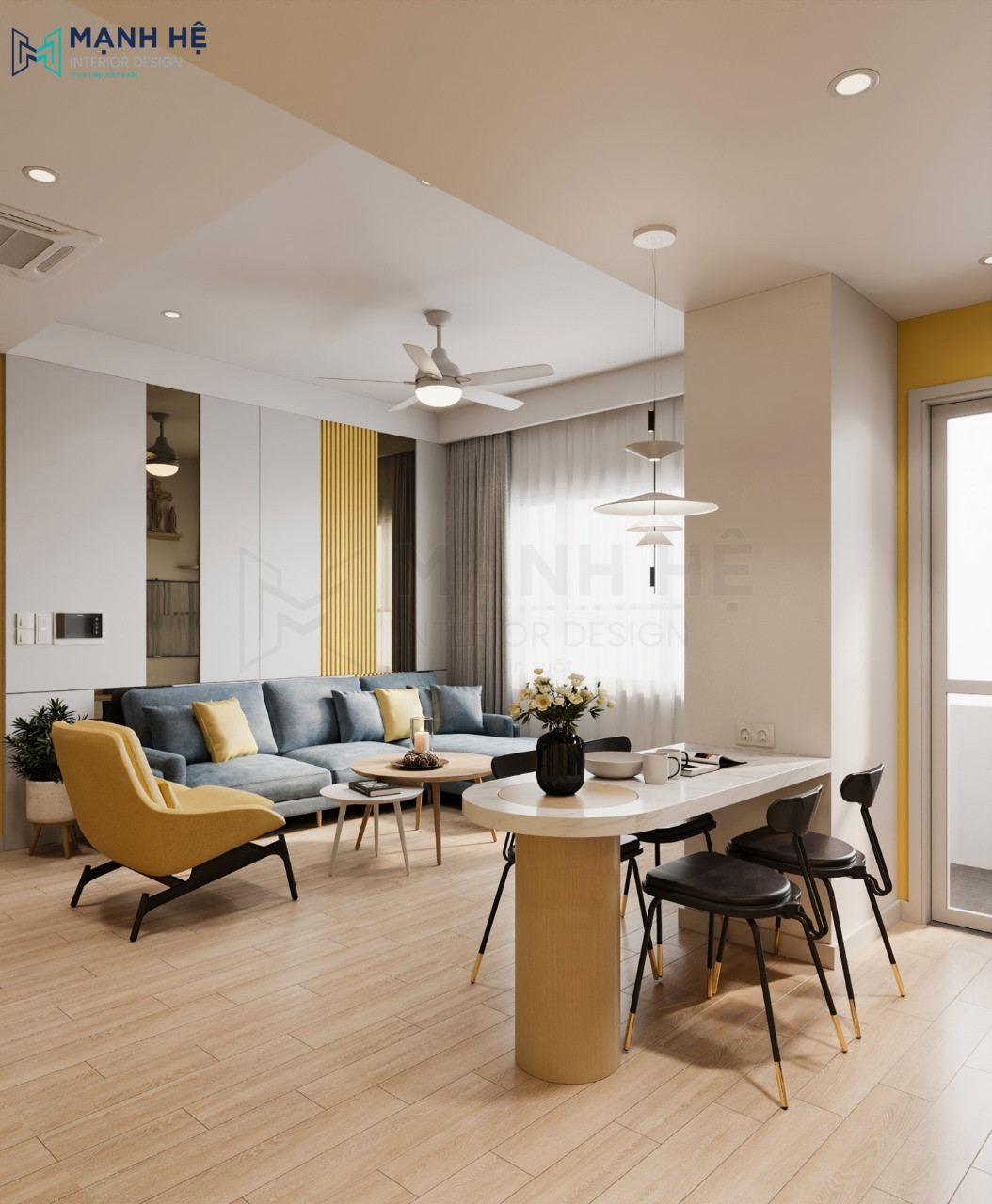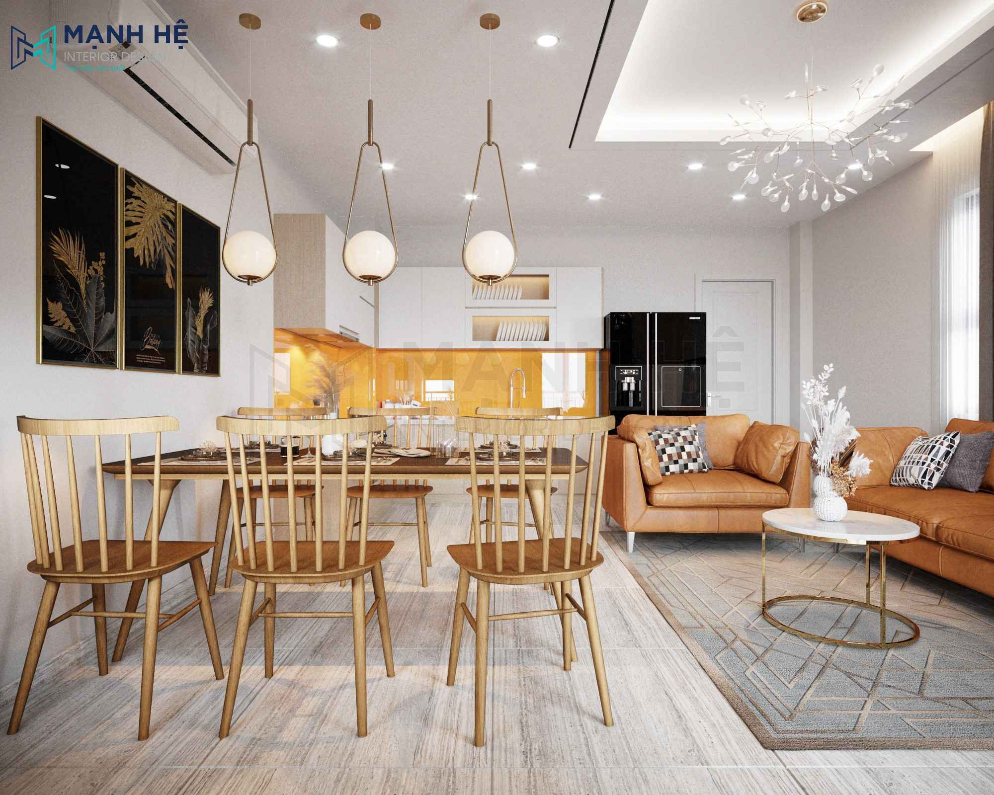 Thiết kế nội thất phòng khách nối liền phòng bếp và phòng Ăn