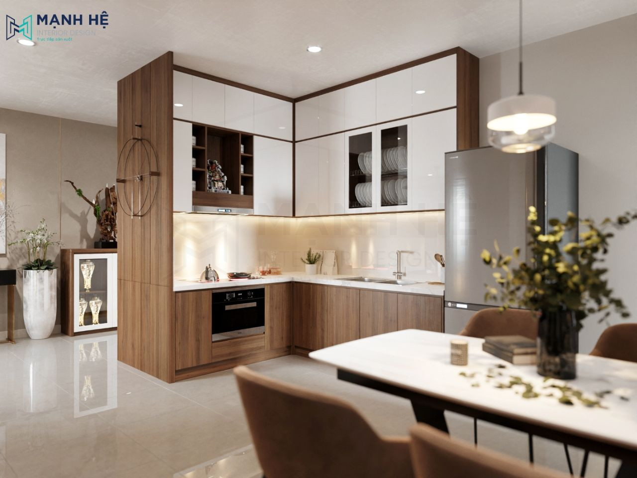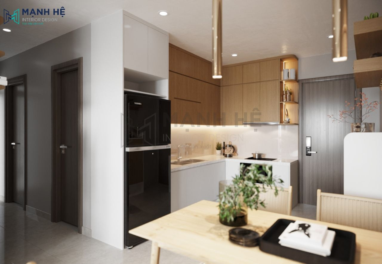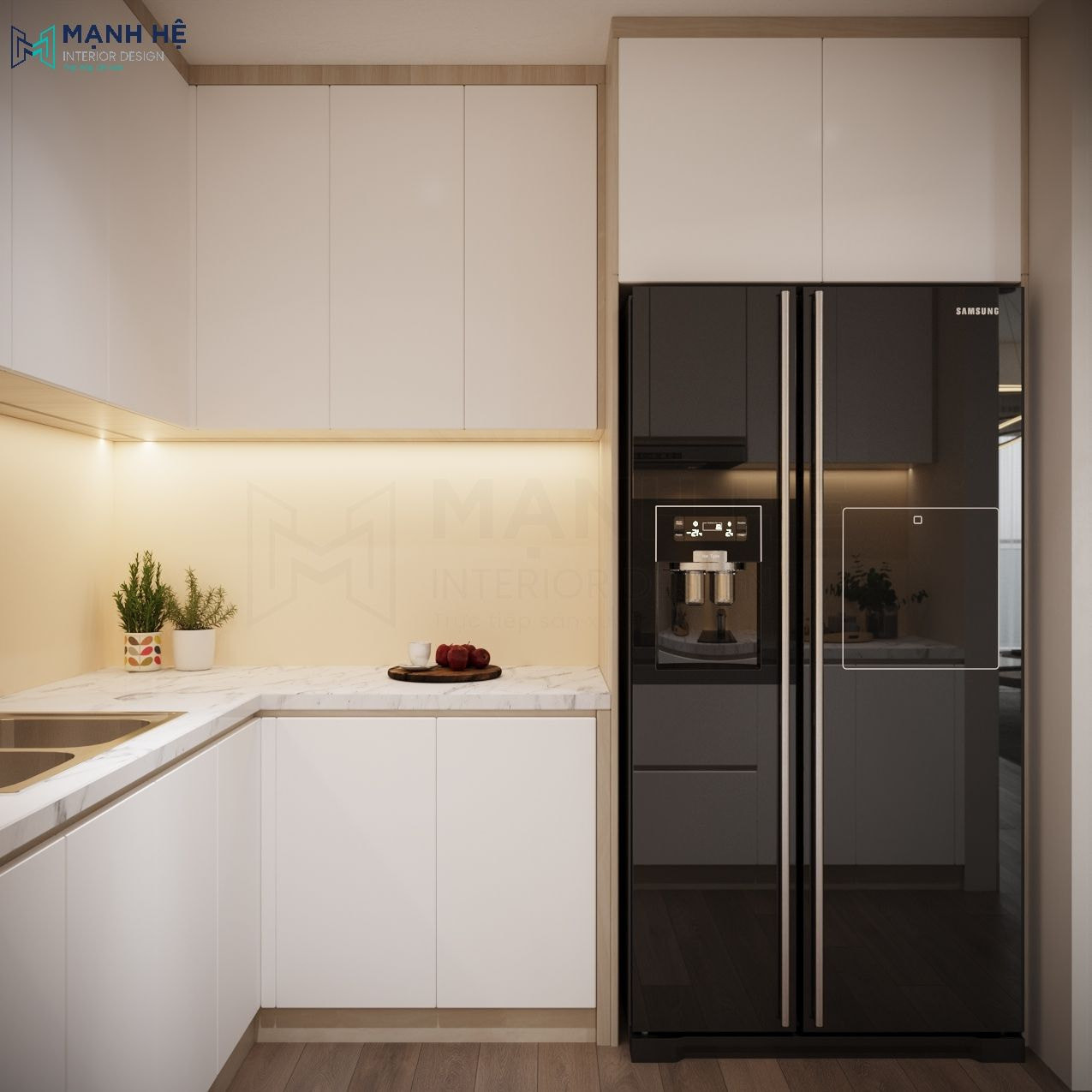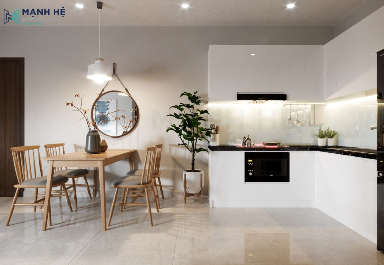 Mẫu 1: Thiết Kế Phòng Bếp Nhỏ Đẹp Cho Căn Hộ Tiện Nghi 2 Phòng Ngủ