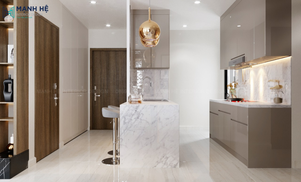 Mẫu 13: Thiết Kế Bếp Chung Cư Với Quầy Bar Pha Chế