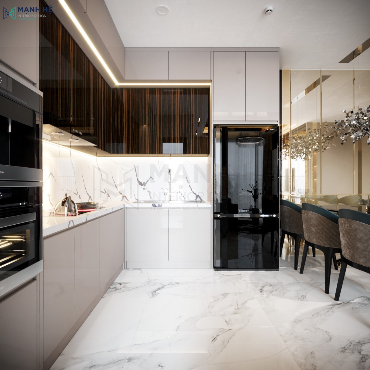 Mẫu 11: Thiết Kế Bếp Chung Cư Phong Cách Luxury, Rực Rỡ