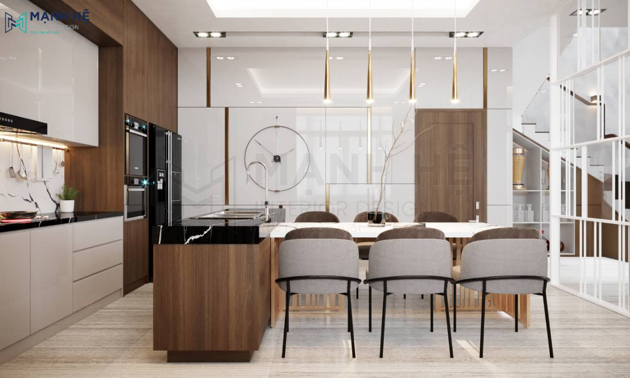Đảo bếp là một xu hướng thiết kế thịnh hành gần đây, nó không chỉ tăng tính thẩm mỹ mà còn bổ sung đáng kể sự tiện nghi. Với thiết kế đa năng, khu vực này có thể làm nơi sơ chế, bày biện món ăn, hoặc thậm chí là quầy bar nhỏ cho các bữa tiệc ấm cúng.