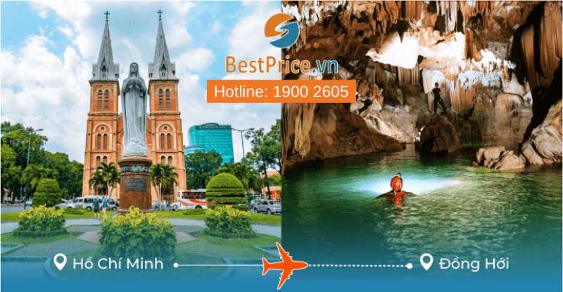 Chuyến bay thẳng từ sân bay Tân Sơn Nhất (TP. Hồ Chí Minh) đến sân bay Đồng Hới (Quảng Bình) thường mất khoảng 1 tiếng 40 phút. Đây là phương án nhanh nhất để di chuyển giữa hai địa điểm. -