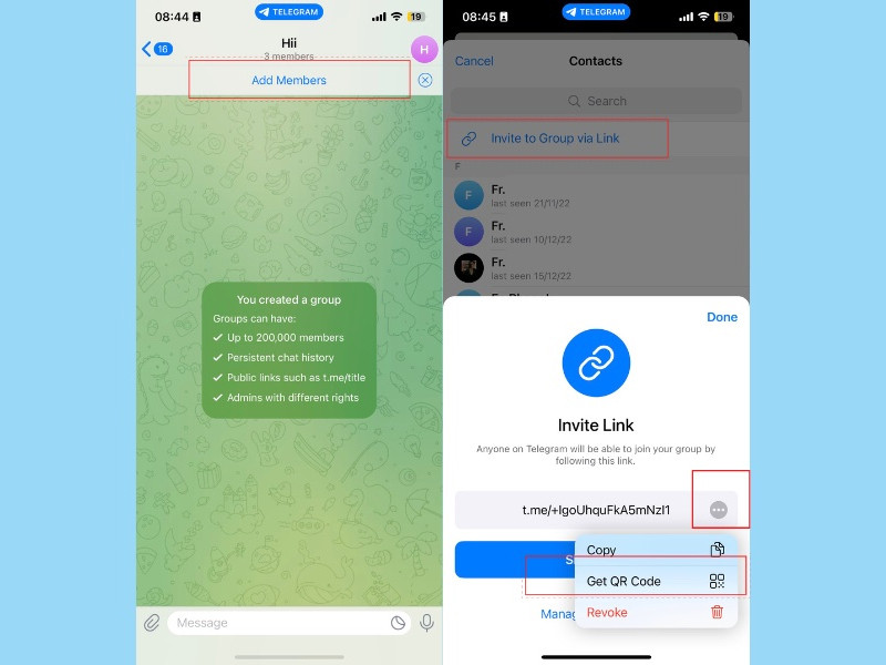 Trang thông tin nhóm Telegram hiển thị tùy chọn liên kết và mã QR để mời thành viên, hướng dẫn quét mã telegram ở đâuTrang thông tin nhóm Telegram hiển thị tùy chọn liên kết và mã QR để mời thành viên, hướng dẫn quét mã telegram ở đâu