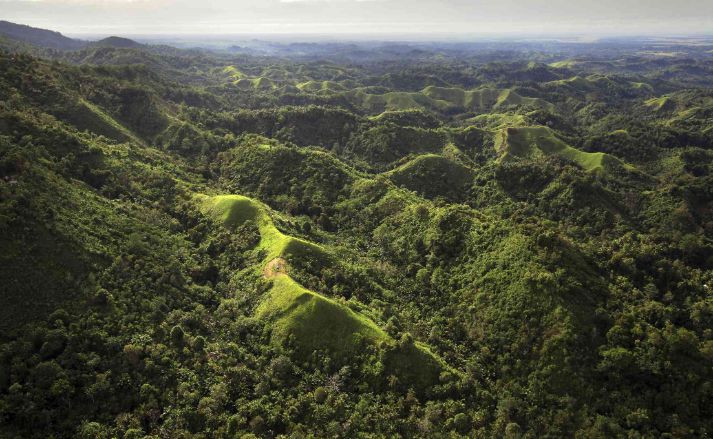 Góc nhìn từ trên cao về rừng mưa New Guinea xanh tốt.