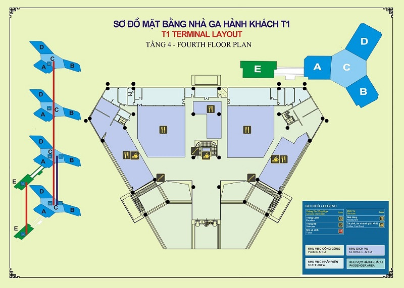 - Tầng 4: Khu vực dành cho Phòng chờ hạng Thương gia và các dịch vụ thương mại phi hàng không đa dạng.