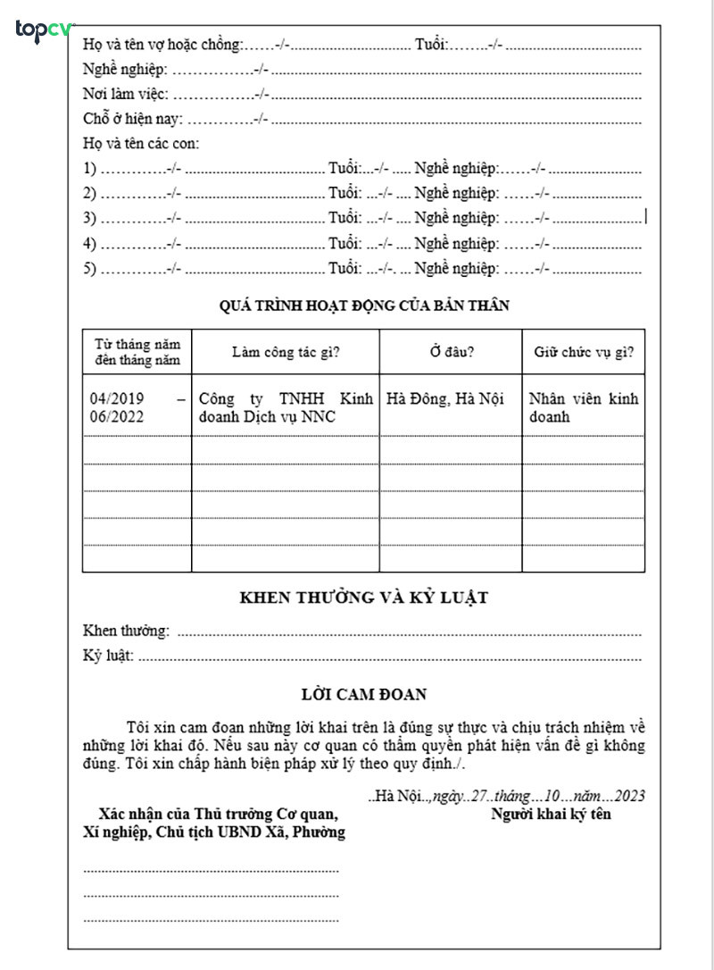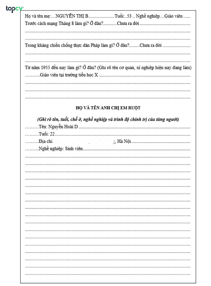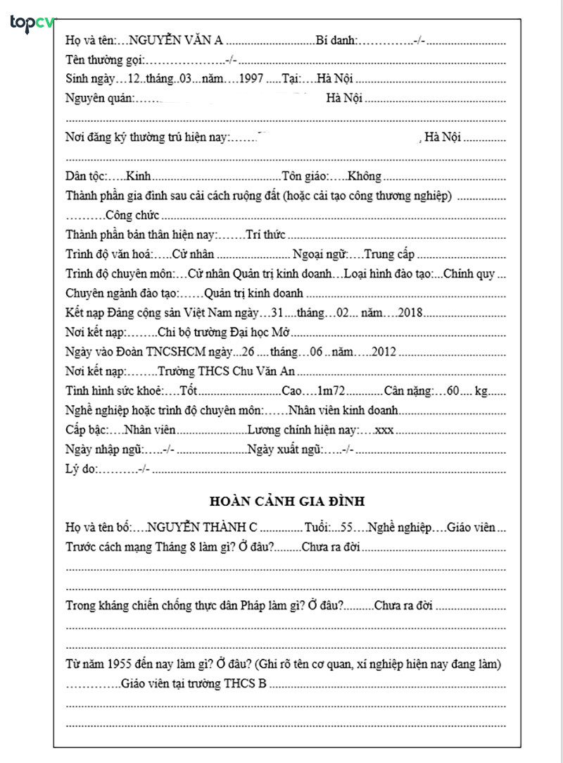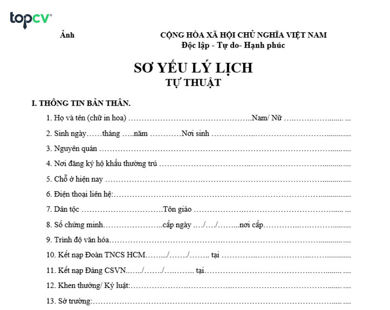 Hướng Dẫn Điền Sơ Yếu Lý Lịch Chi Tiết Và Chính Xác