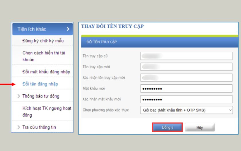 Hoàn tất các bước đổi tên đăng nhập ACB trực tuyến