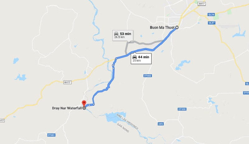 Bản đồ đường đi đến thác Dray Nur từ trung tâm Buôn Ma ThuộtBản đồ đường đi đến thác Dray Nur từ trung tâm Buôn Ma Thuột