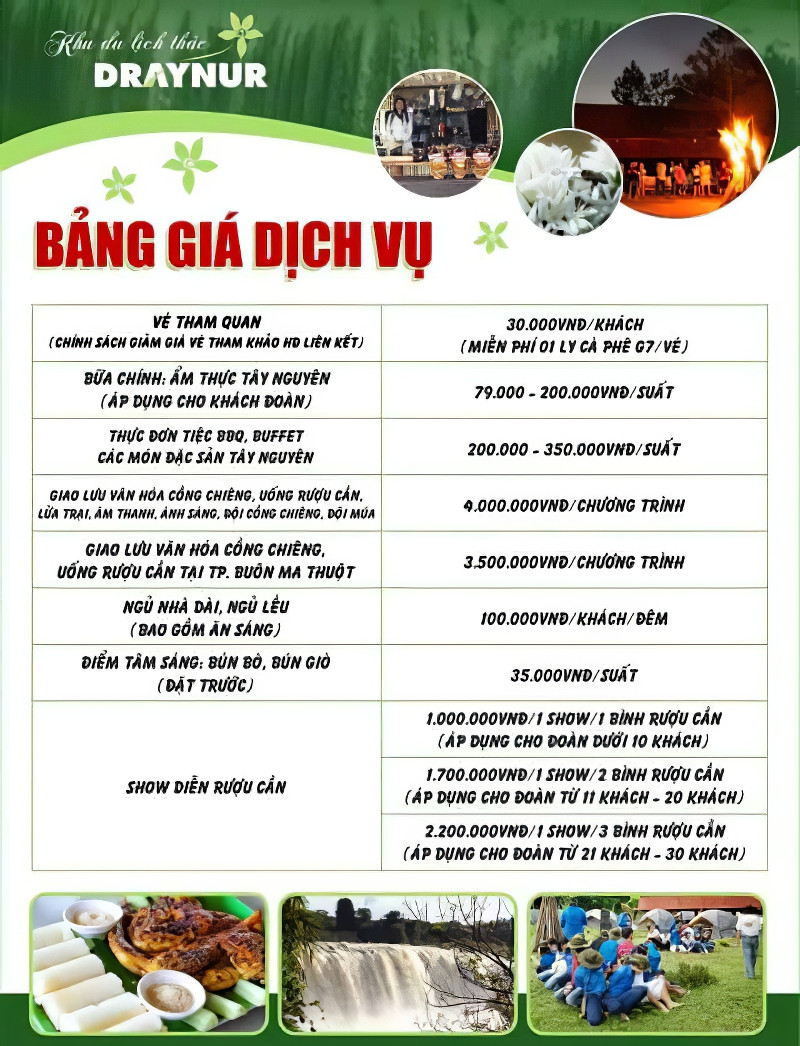 Bảng giá vé tham quan khu du lịch thác Dray Nur chi tiếtBảng giá vé tham quan khu du lịch thác Dray Nur chi tiết
