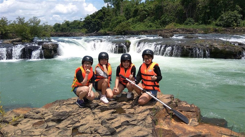 Du khách trải nghiệm chèo thuyền kayak trên dòng sông gần thác Dray NurDu khách trải nghiệm chèo thuyền kayak trên dòng sông gần thác Dray Nur