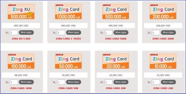 Hiện nay, VNG cung cấp hai hình thức thẻ Zing chính để đáp ứng nhu cầu đa dạng của người dùng. Đó là thẻ cào vật lý, loại thẻ truyền thống được in mã số và seri, có thể tìm thấy tại nhiều cửa hàng; và thẻ điện tử, được mua trực tuyến và nhận mã số qua email hoặc tin nhắn. Tỷ lệ quy đổi tiêu chuẩn hiện nay là 10.000 VNĐ tương đương 100 Zing Xu, một tỷ lệ ổn định giúp game thủ dễ dàng tính toán chi phí.