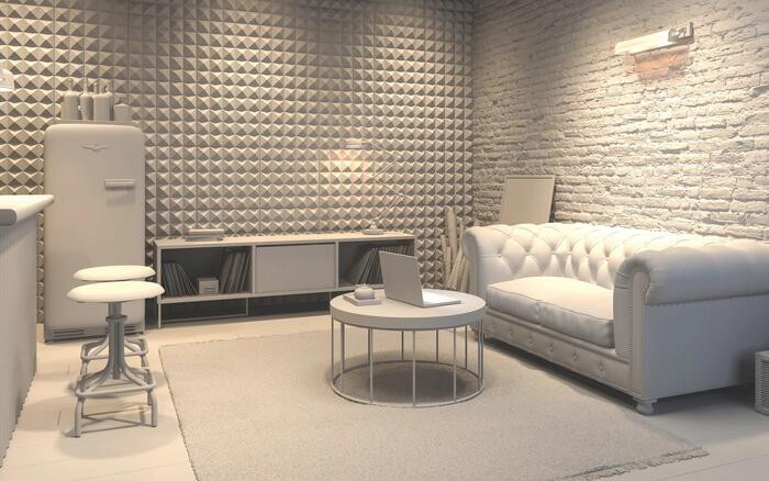 Phối cảnh 3D minh họa không gian trong thiết kế chung cư mini 100m2.