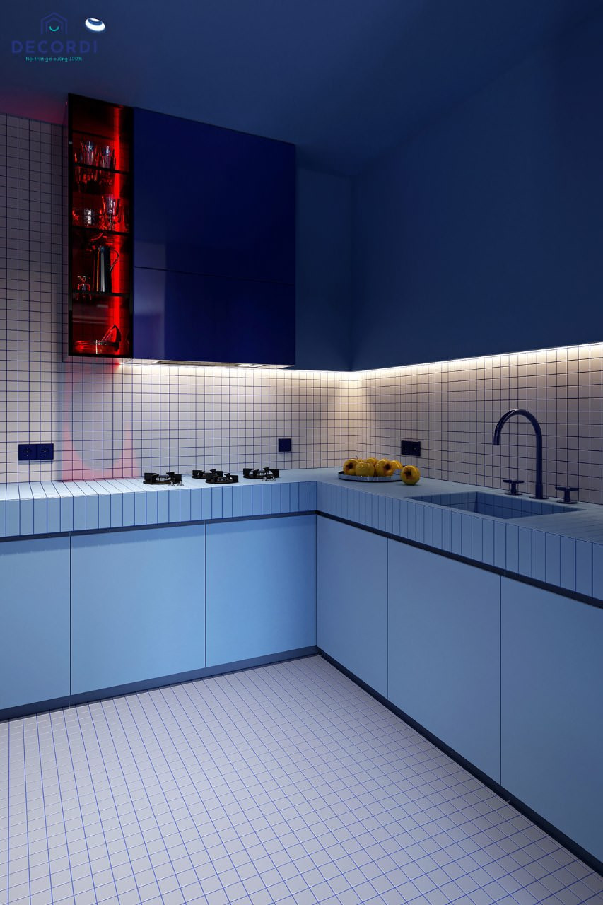 Khu vực bếp với tủ gỗ công nghiệp hiện đại cho căn hộ chung cư 75m2