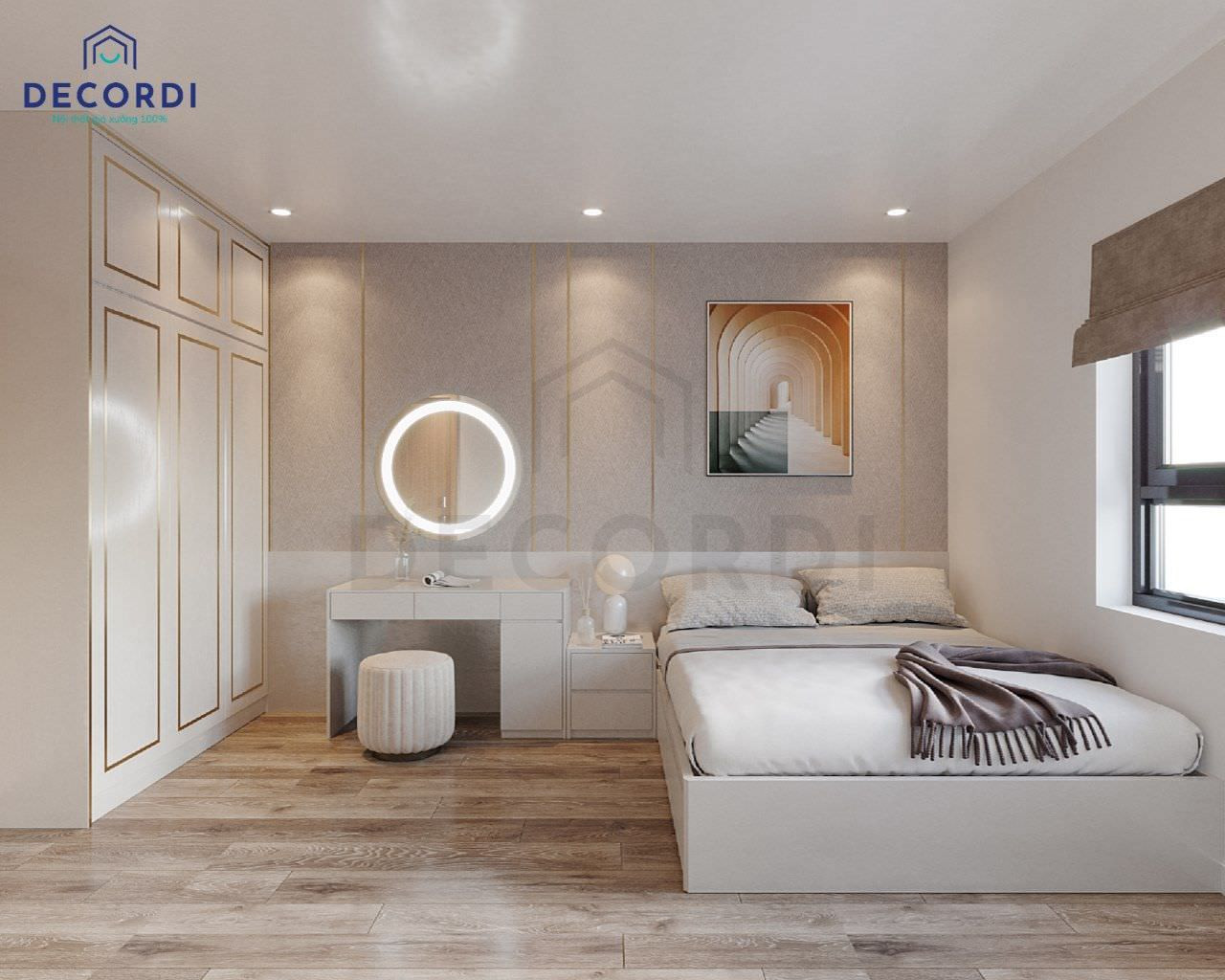 Đối với phòng ngủ, phong cách hiện đại tập trung vào sự thoải mái và tiện dụng. Giường ngủ có thiết kế đơn giản, kết hợp tủ quần áo âm tường hoặc tủ kịch trần để tối đa hóa không gian. Bàn làm việc nhỏ gọn hoặc bàn trang điểm tích hợp cũng là những lựa chọn thông minh. Ánh sáng tự nhiên được tận dụng tối đa, kết hợp với hệ đèn LED âm trần tạo không gian ấm cúng và đầy đủ ánh sáng cho các hoạt động sinh hoạt.
