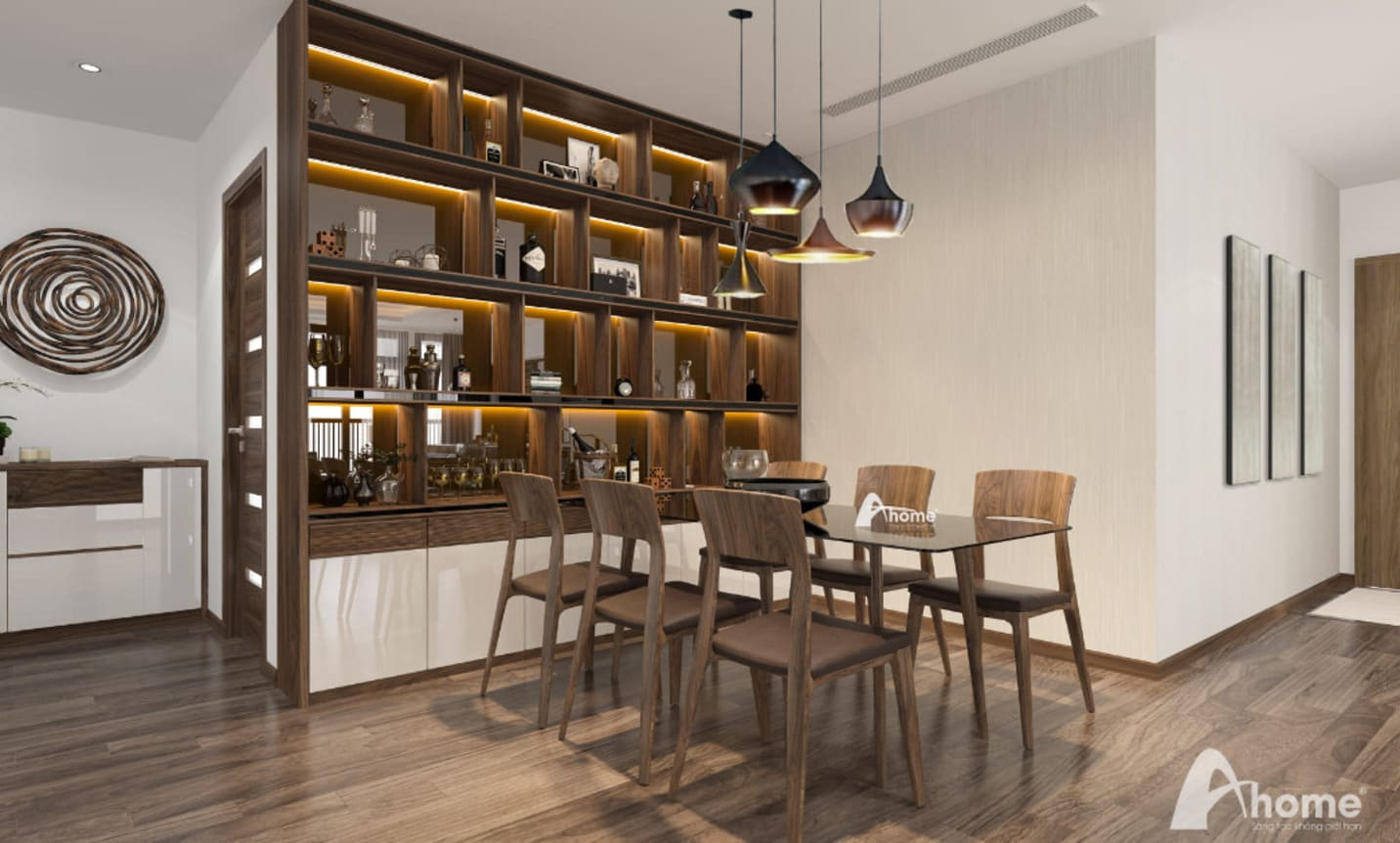 Thiết kế nội thất chung cư Ahome 55m2 theo phong cách Hiện đại cho thấy sự ứng dụng hiệu quả của vật liệu tự nhiên như gỗ, tre, kết hợp màu sắc trung tính. Điều này tạo ra không gian yên bình, gần gũi với thiên nhiên, dù nằm giữa lòng đô thị.