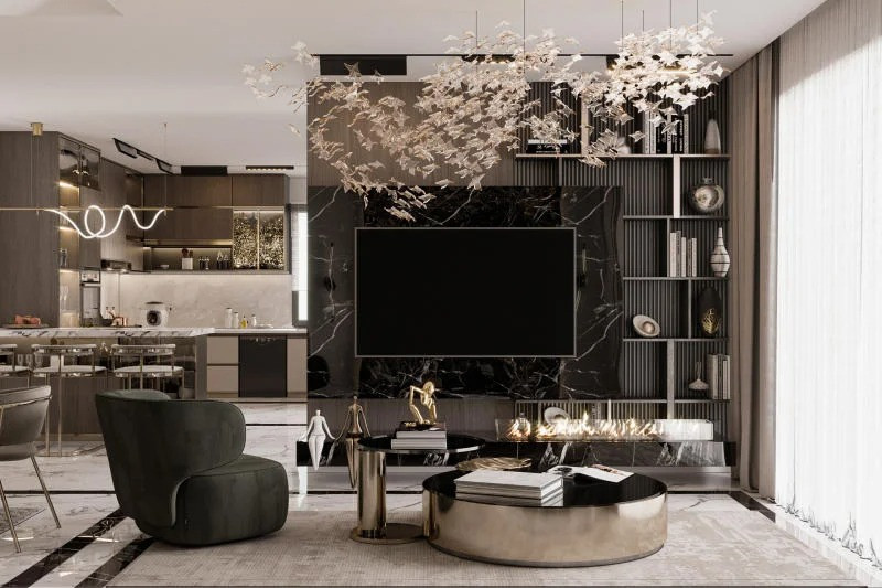 Phong cách Luxury là biểu tượng của sự xa hoa, đẳng cấp và tinh tế. Nó chú trọng vào việc sử dụng vật liệu cao cấp nhất như đá marble, gỗ quý, da thật, kim loại mạ vàng hoặc bạc, cùng với các chi tiết trang trí thủ công tỉ mỉ. Màu sắc thường là gam trầm ấm như nâu, đen, xám đậm kết hợp với vàng hoặc bạc để tăng thêm vẻ lộng lẫy. Ánh sáng đóng vai trò quan trọng trong việc tôn lên vẻ đẹp của từng món đồ nội thất. Đây là lựa chọn cho những ai muốn sở hữu một không gian sống như khách sạn 5 sao, khẳng định phong cách sống đỉnh cao và gu thẩm mỹ vượt trội.