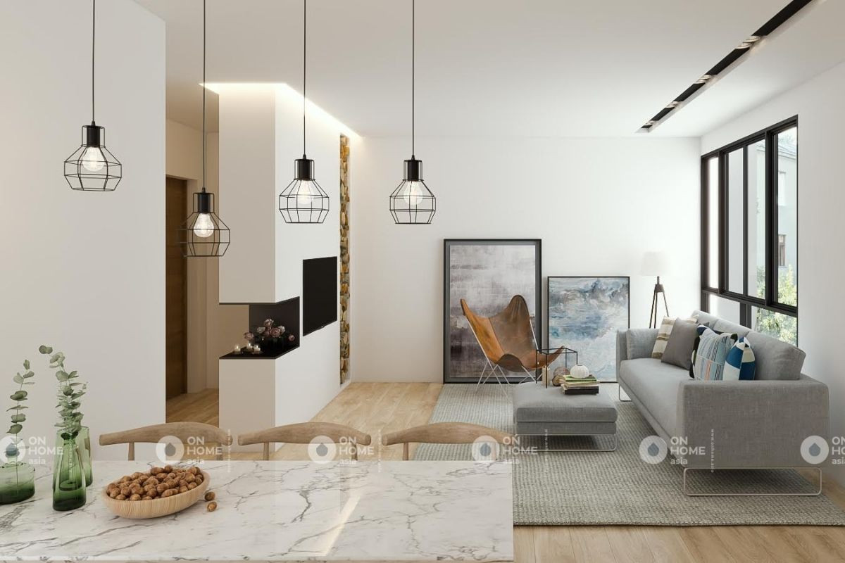 Phong cách tối giản (Minimalism) là giải pháp hoàn hảo để tối ưu phòng khách chung cư 70m2, tạo cảm giác rộng rãi hơn diện tích thực. “Less is more” (ít là nhiều) là triết lý cốt lõi của phong cách này, tập trung vào việc loại bỏ mọi thứ không cần thiết, chỉ giữ lại những món đồ thực sự có giá trị và chức năng.