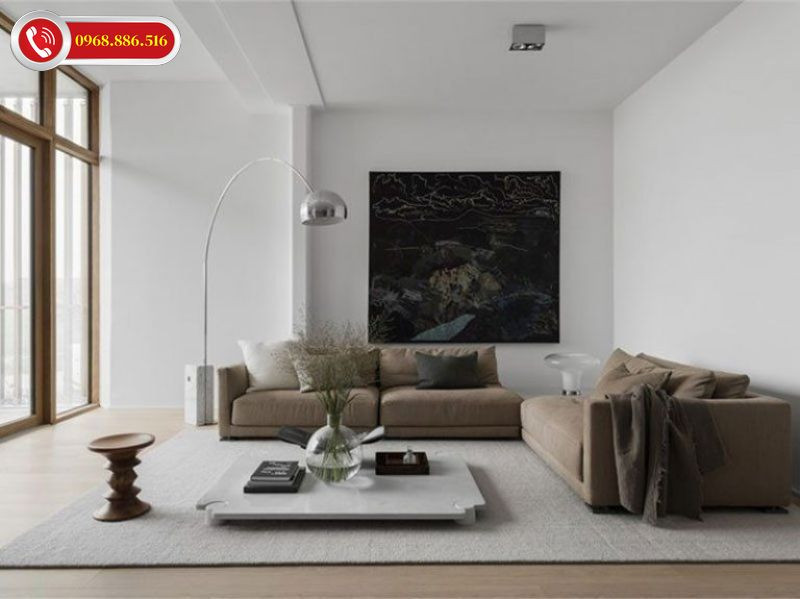 Phòng khách bố trí theo phong cách tối giản minimalism tận dụng ánh sáng tự nhiên