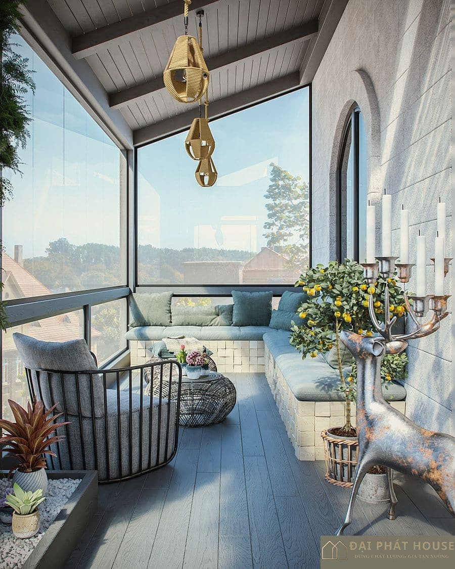 Ban công hoặc lô gia là nơi kết nối căn hộ chung cư hay nhà phố với không gian bên ngoài, mang lại ánh sáng và không khí trong lành. Một thiết kế nội thất thông minh có thể biến khu vực này thành một khu vườn nhỏ, góc thư giãn đọc sách, hoặc thậm chí là khu vực giặt – phơi đồ tiện lợi. Trồng cây xanh, bố trí bộ bàn ghế nhỏ xinh, hoặc tích hợp tủ chứa đồ ẩn sẽ giúp tối ưu công năng và tạo điểm nhấn độc đáo cho không gian sống. Khu vực này cũng cần được chú ý về vật liệu chống thấm, chịu nắng mưa tốt.