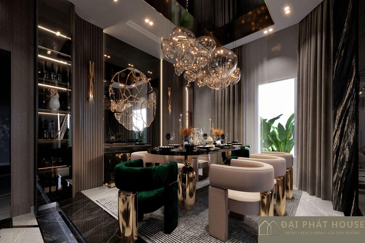 Phong cách Luxury biến căn hộ chung cư hay nhà phố thành một không gian sống đẳng cấp như khách sạn 5 sao, phản ánh gu thẩm mỹ tinh tế và vị thế của gia chủ. Thiết kế nội thất Luxury chú trọng vào việc sử dụng vật liệu cao cấp như đá marble, gỗ tự nhiên quý hiếm, kim loại mạ vàng, da thật. Mọi chi tiết đều được chăm chút tỉ mỉ, từ đèn chùm pha lê, đồ nội thất chạm khắc đến các món đồ trang trí độc đáo. Phong cách này không chỉ mang lại sự sang trọng mà còn thể hiện sự tiện nghi tối đa, tạo ra một trải nghiệm sống xa hoa và độc quyền.