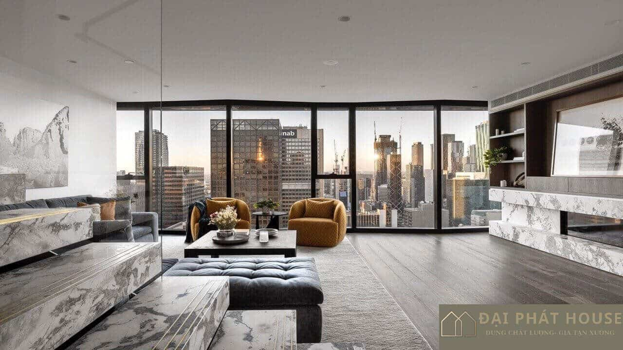 Với diện tích trên 90m², các căn hộ lớn mang lại không gian rộng rãi và cho phép gia chủ sáng tạo đa dạng các phong cách thiết kế nội thất chung cư – từ cổ điển, tân cổ điển đến hiện đại cao cấp. Phòng khách thường được đầu tư kỹ lưỡng với bộ sofa lớn, khu vực bếp và ăn liền kề, có thể thêm quầy bar mini hoặc đảo bếp. Các phòng ngủ được thiết kế thi công nội thất chung cư riêng biệt, đề cao yếu tố tiện nghi và thư giãn tối đa. Nội thất thường sử dụng chất liệu cao cấp như gỗ tự nhiên, đá marble, da thật, phản ánh sự sang trọng và đẳng cấp của gia chủ.