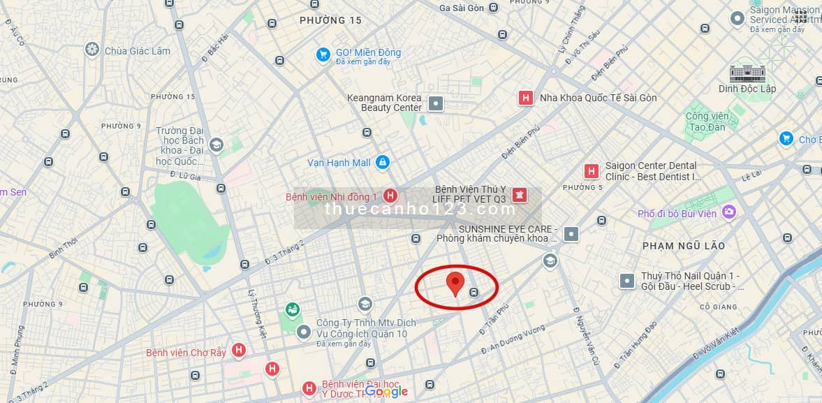 Bản đồ vị trí trung tâm của chung cư Ngô Gia Tự, thuận tiện cho việc di chuyển khi thuê chung cư tại Quận 10