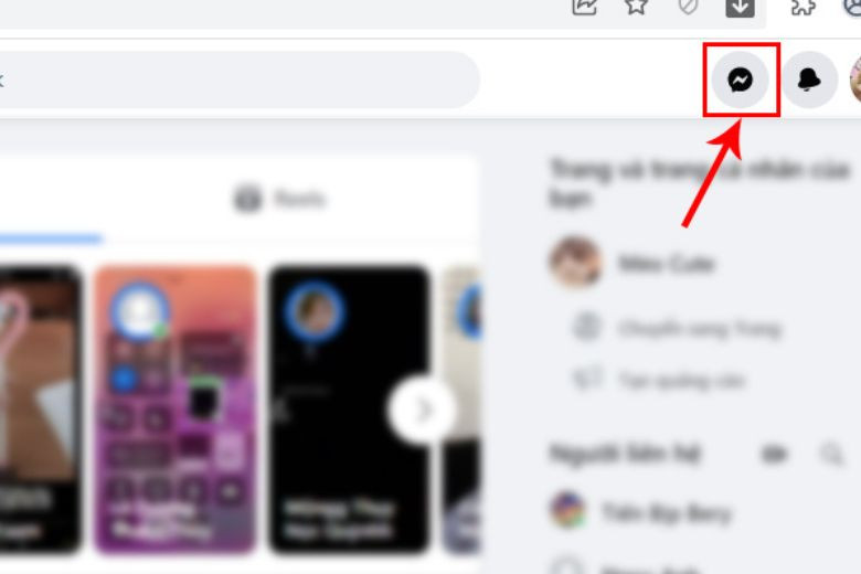 Biểu tượng Messenger trên giao diện Facebook máy tính để bắt đầu xem tin nhắn hạn chế