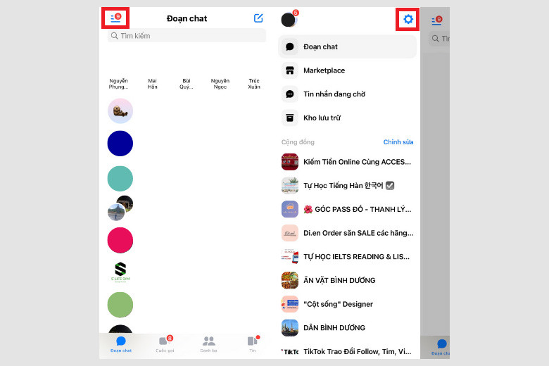Để thực hiện, bạn hãy mở ứng dụng Messenger trên điện thoại của mình. Sau đó, ở góc trên bên trái màn hình, bạn sẽ thấy biểu tượng ba dấu gạch ngang; hãy nhấn vào đó. Một menu sẽ hiện ra, và bạn cần chọn biểu tượng bánh răng cưa (Cài đặt) ở góc trên bên phải để vào phần cấu hình ứng dụng.
