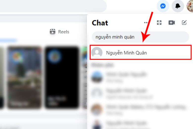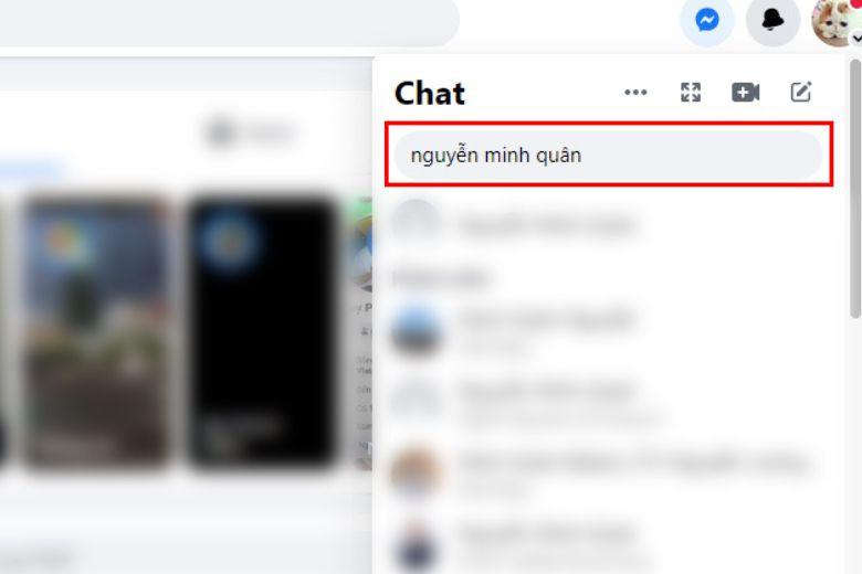 Sau đó, hãy nhập tên của người mà bạn đã hạn chế tin nhắn vào ô tìm kiếm. Tương tự như trên điện thoại, Messenger sẽ hiển thị các kết quả phù hợp.