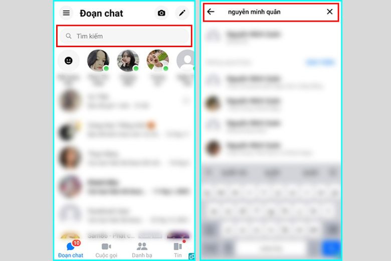 Bên cạnh việc điều hướng qua cài đặt, một cách nhanh chóng và tiện lợi khác để biết tin nhắn hạn chế trên Messenger ở đâu là sử dụng thanh tìm kiếm trực tiếp trong ứng dụng. Phương pháp này đặc biệt hữu ích khi bạn đã biết chính xác tên của người mà bạn muốn xem tin nhắn.