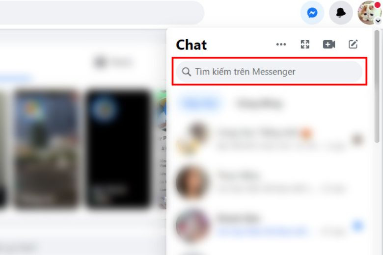 Khi giao diện Messenger hiện ra, bạn sẽ thấy một thanh tìm kiếm ở phía trên cùng của danh sách cuộc trò chuyện. Nhấp vào thanh tìm kiếm này.