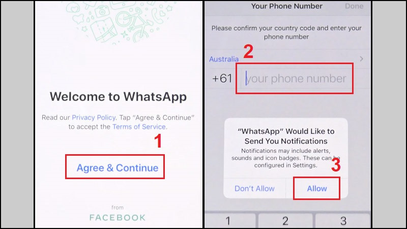 Nhập số điện thoại để đăng nhập lại WhatsApp và bắt đầu khôi phục tin nhắn trên iPhone