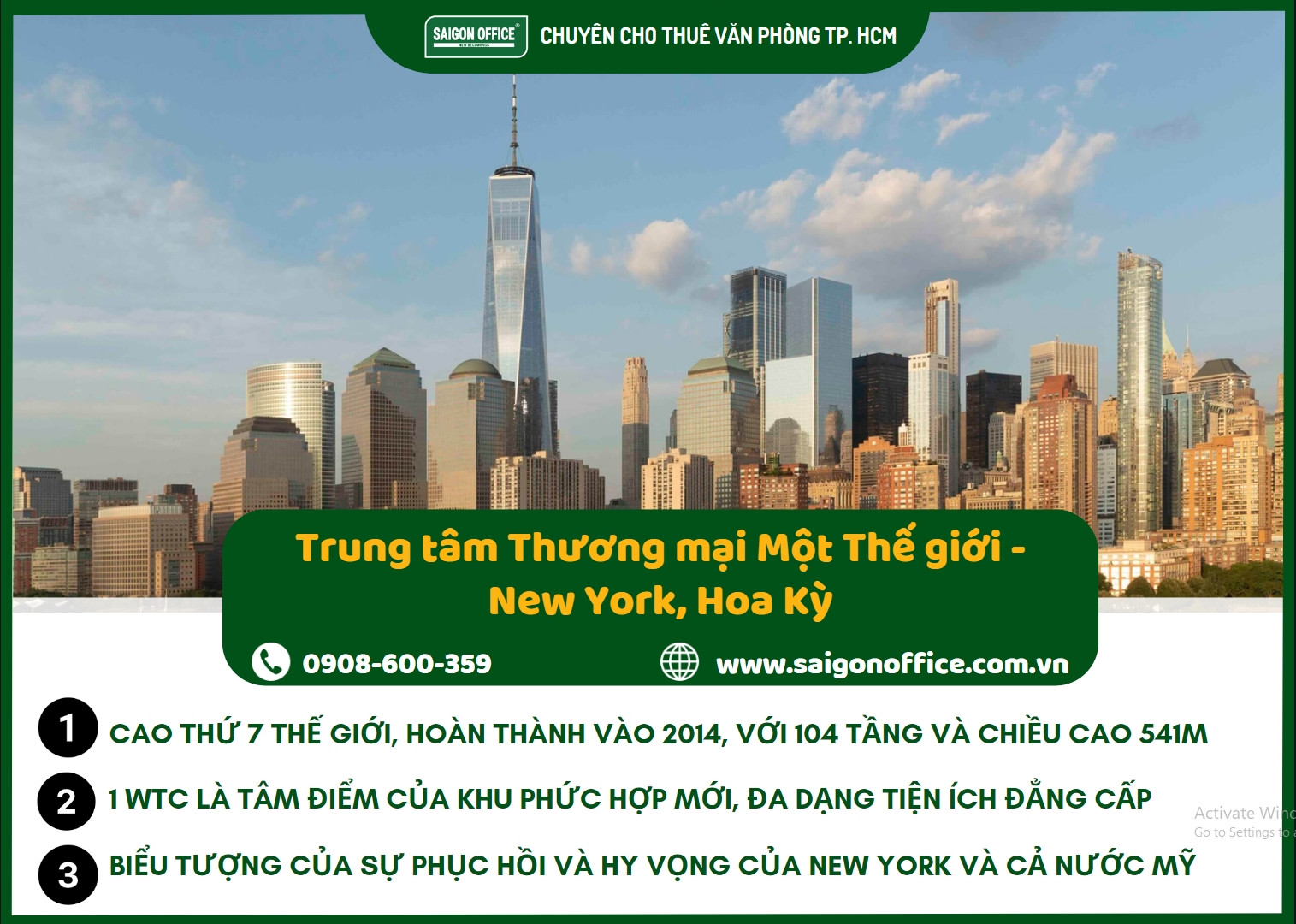 | #7 | Trung tâm Thương mại Một Thế giới | New York – Hoa Kỳ | 546,2m |