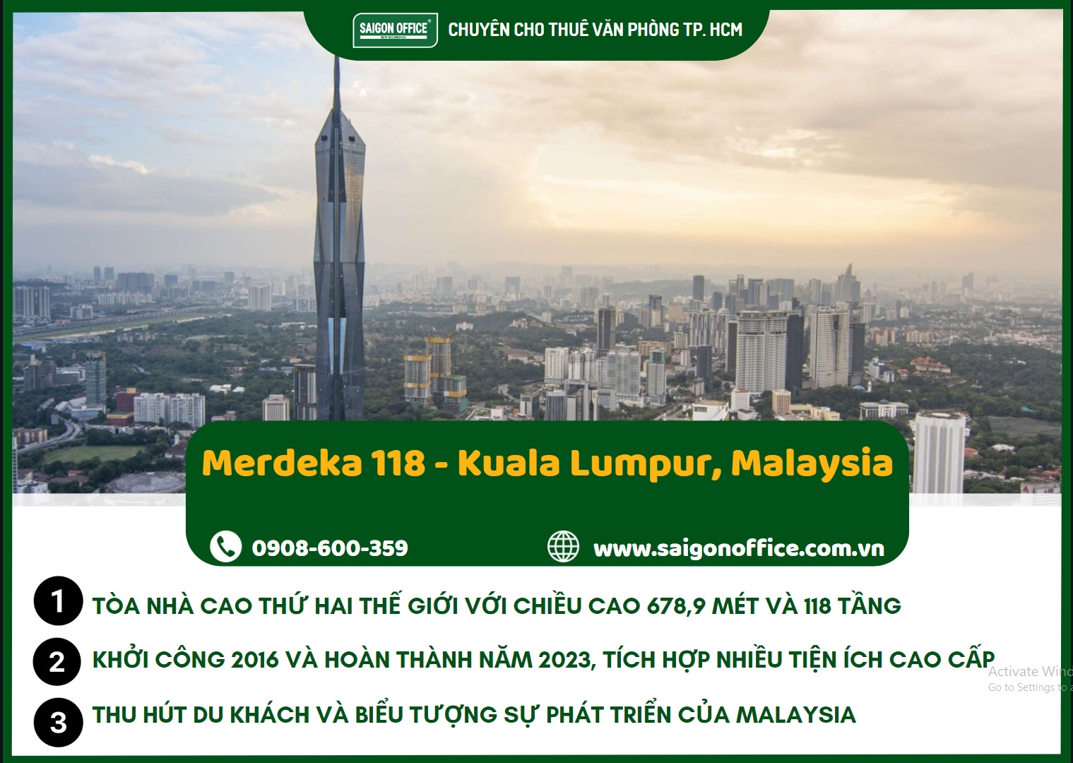 Merdeka 118, tòa nhà cao thứ hai thế giới, kiến trúc biểu tượng của Malaysia