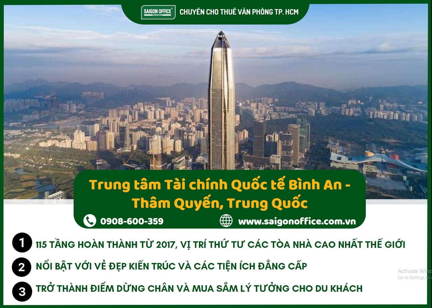 Trung tâm tài chính quốc tế Bình An, hay Ping An IFC, với 115 tầng và hoàn thành từ năm 2017, đã nhanh chóng thu hút sự quan tâm của du khách và giới kinh doanh từ khắp nơi, vươn lên vị trí thứ tư trong danh sách các tòa nhà cao nhất thế giới. Do đó, không có gì ngạc nhiên khi nhiều du khách khi đến Trung Quốc đều mong muốn khám phá Ping An IFC, một biểu tượng kiến trúc của thành phố Thâm Quyến năng động.