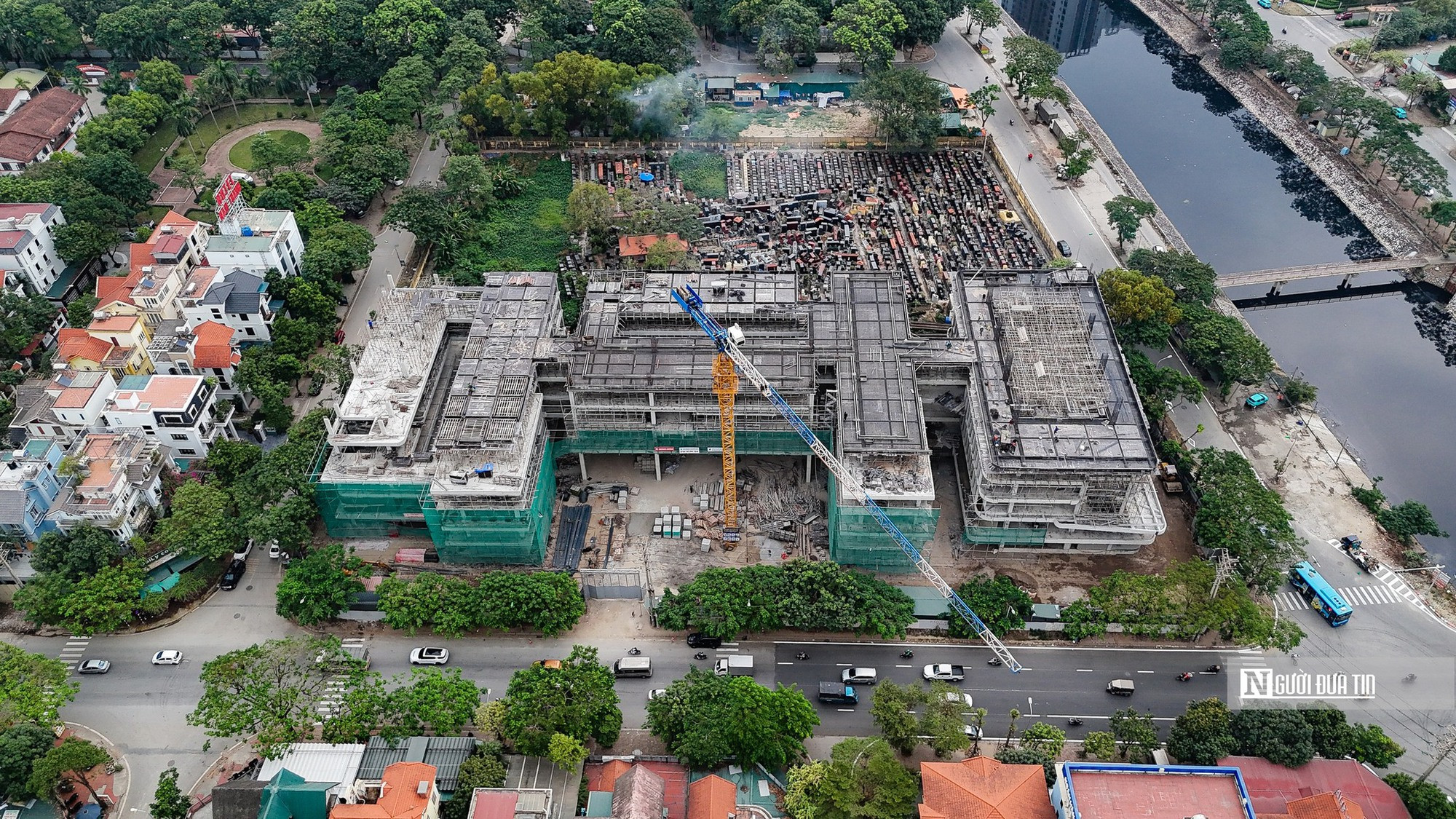 Góc nhìn từ trên cao khu vực xây dựng trường THPT Đỗ Mười