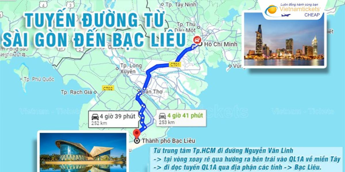 • Đường hàng không (kết hợp): Bay đến sân bay Cà Mau từ TP.HCM, sau đó di chuyển đường bộ đến Bạc Liêu nếu cần, hoặc ngược lại.