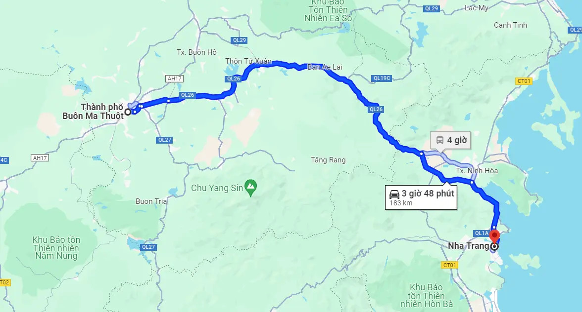 Quãng đường di chuyển từ Đắk Lắk đến Nha Trang