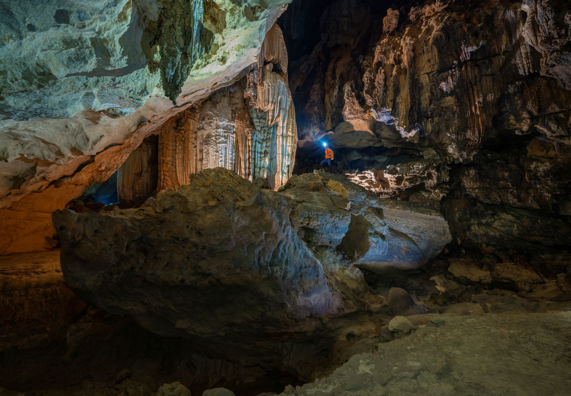 Đoàn khách thám hiểm bên trong hang Chà Lòi Quảng Bình