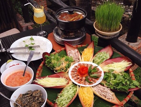 Món lẩu thả tươi ngon với các nguyên liệu được bày biện đẹp mắt, một đặc sản không thể bỏ qua ở Bình Thuận