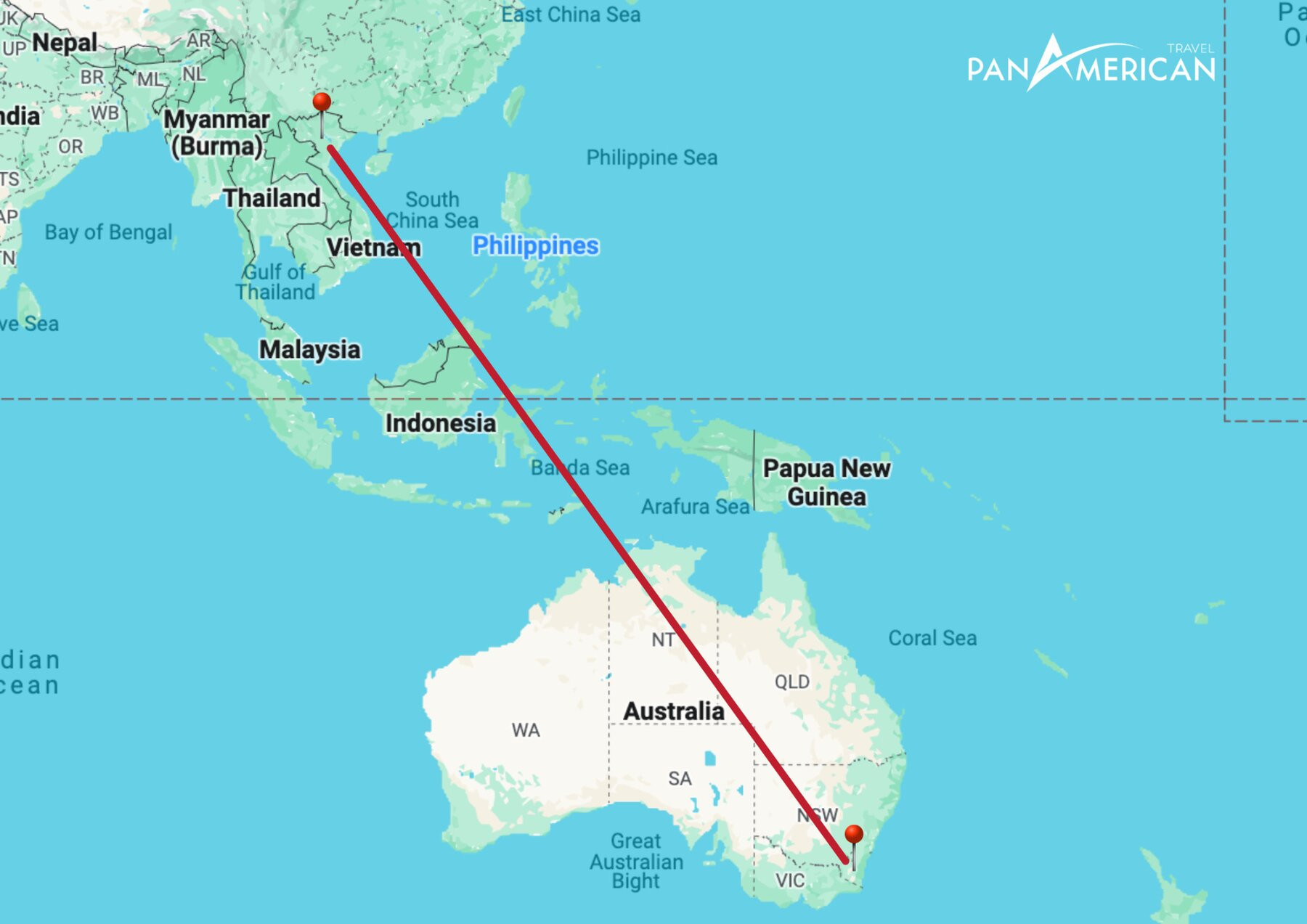 Khoảng cách này dao động tùy thuộc vào thành phố cụ thể ở Việt Nam và Úc. Ví dụ, từ Thành phố Hồ Chí Minh đến Sydney là khoảng 6.853 km, còn từ Hà Nội đến Canberra là 7.756 km.