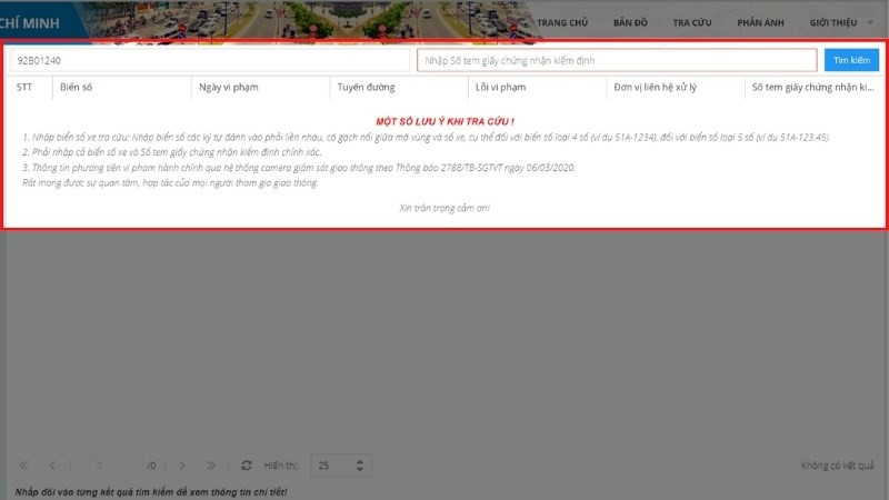 2. Kiểm Tra Phạt Nguội Trực Tuyến Trên Website Sở Giao thông Vận tải