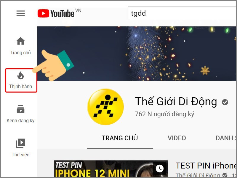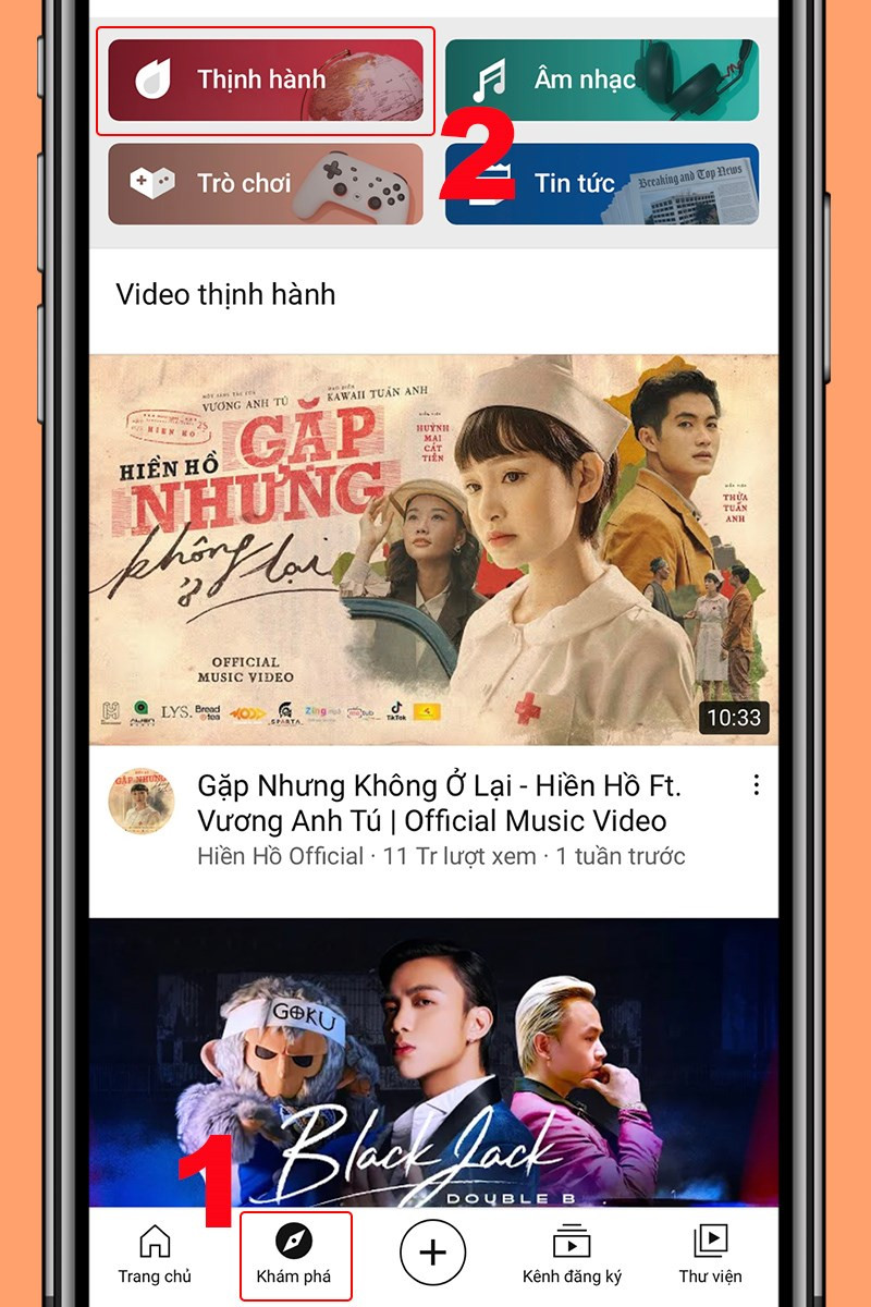 Truy cập tab Khám phá và chọn Thịnh hành để xem video hot trên YouTube
